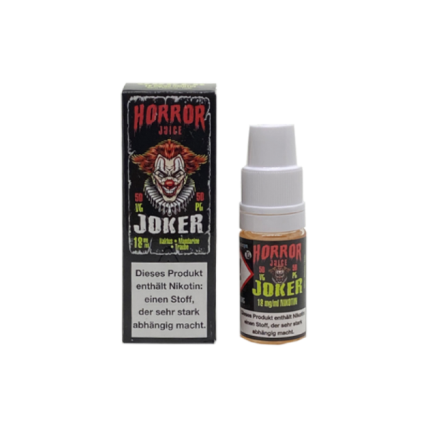 Das Horror Juice Liquid Joker ist ein Liquid, das in vier verschiedenen Nikotinstärken (3 mg/ml, 6 mg/ml, 12 mg/ml, 18 mg/ml) erhältlich ist. Geschmac..