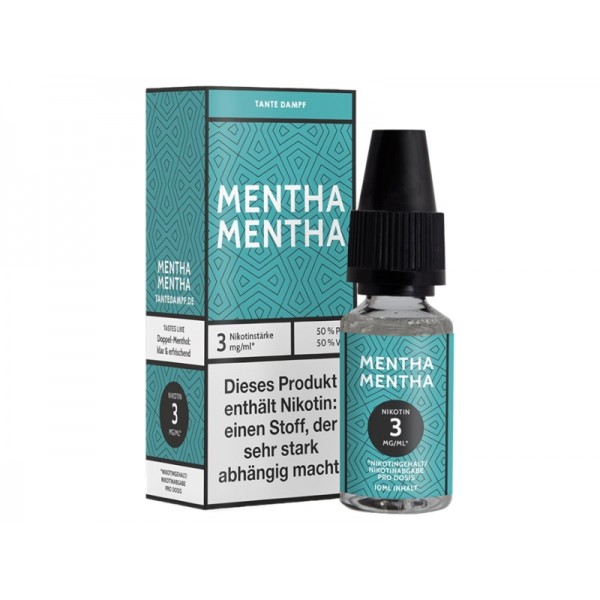 Von der deutschen Marke Tante Dampf erhalten Sie das gebrauchsfertige Liquid Mentha Mentha. Dieses entfaltet beim Dampfen den Geschmack von Menthol. S..